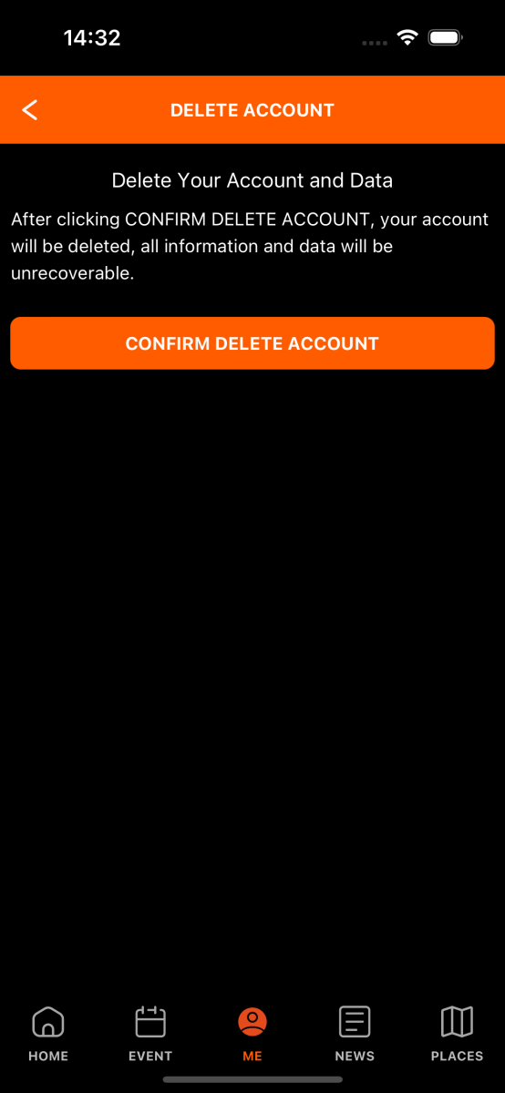 - Open app -> ME -> Settings app -> Delete Account -> CONFIRM DELETE ACCOUNT
