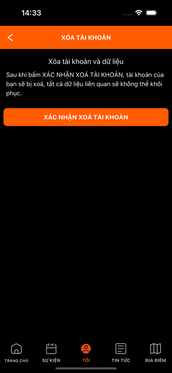 - Bấm vào XÁC NHẬN XÓA TÀI KHOẢN